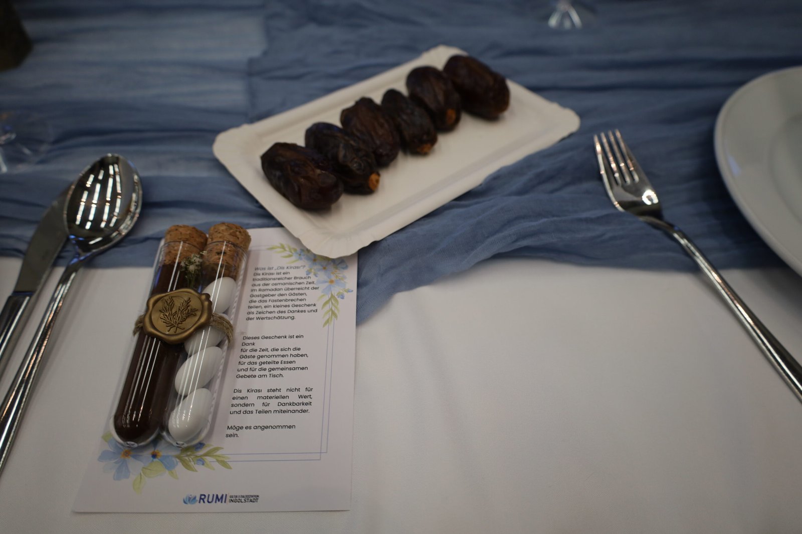 Tokom večeri prisutne je pozdravila i kratki govor održala i Ingrid Gumplinger, povjerenica za migracije Grada Ingolstadta. Gospođa Gumplinger je naglasila važnost ovakvih događaja, vađnost žene u društvu, potrebu njezina osnaživanja te međusobnog podržavanja na putu osobnog i profesionalnog razvoja. Na kraju večeri gošće su sa sobom ponijele mali poklon, koji predstavlja “Dis Kirasi” – osmanski ramazanski običaj u kojem domaćin daruje goste nakon iftara kao znak zahvalnosti što su zajedno podijelili večer, hranu i molitvu. Dvije male staklene epruvete zatvorene plutom i povezane ukrasnom vrpcom sa pečatom u kojima se nalazila turska kava i šećerni bomboni – simbol su druženja, topline i slatkoće zajedništva. „Ovaj mali dar nije zbog materijalne vrijednosti, nego kao uspomena na zajedničku večer, molitvu i trenutke koje smo podijelili.”, istakla je voditeljica programa Yildizli. „U našoj kulturi postoji poznata izreka: ‘Jedna šalica turske kave pamti se četrdeset godina.’ Ova izreka znači da i najmanja gesta gostoprimstva dugo ostaje u srcu i povezuje ljude“, kazala je Yildizli.